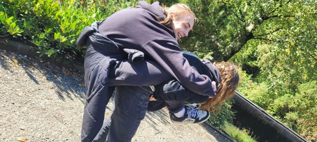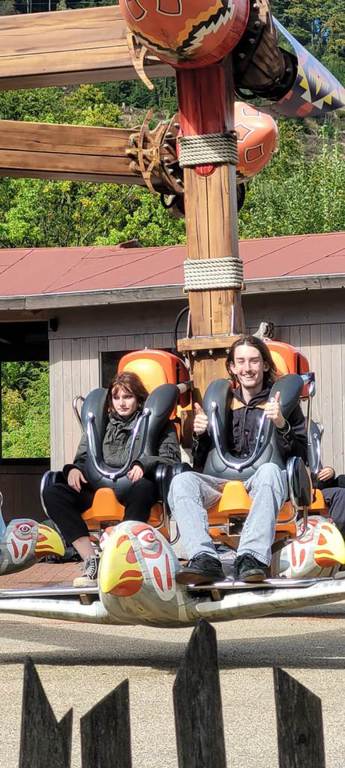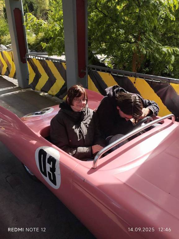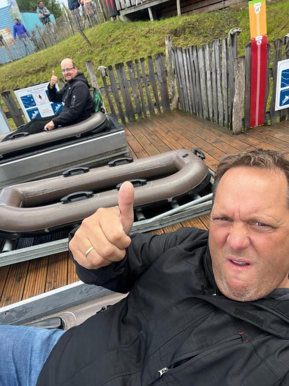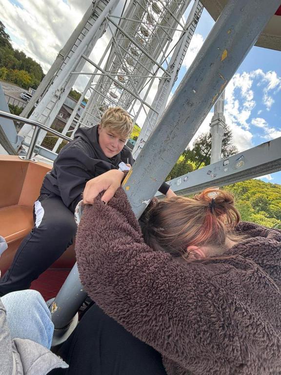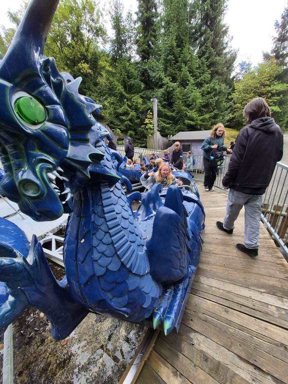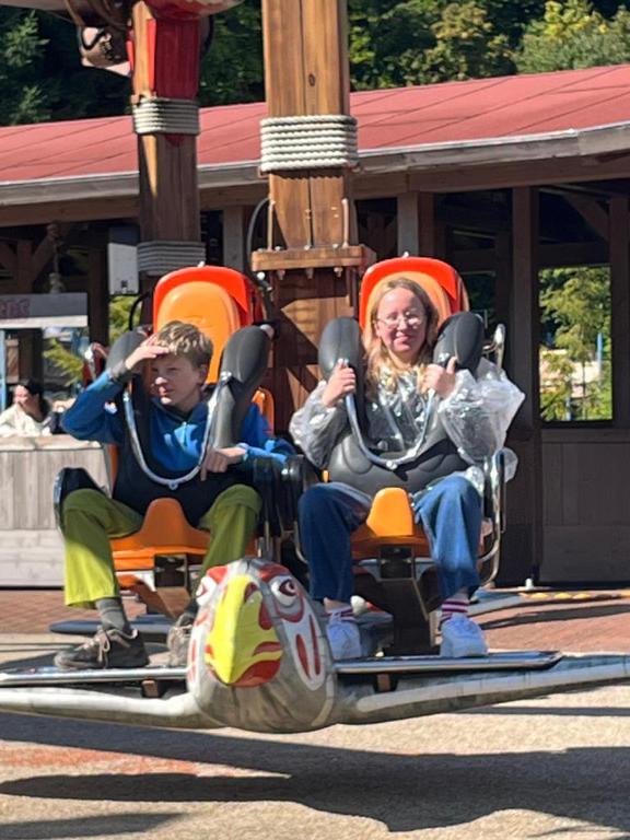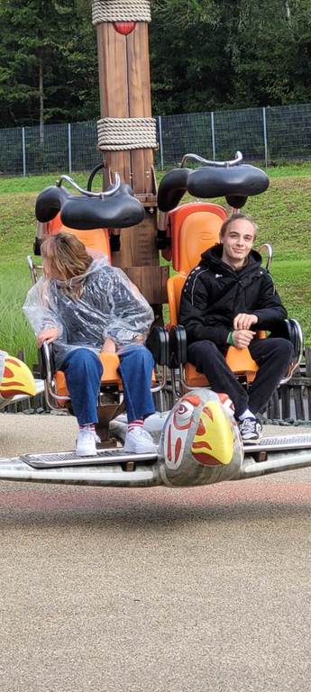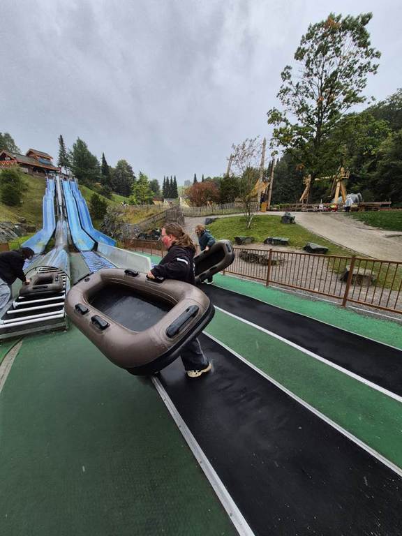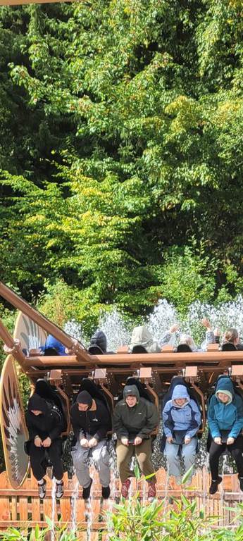 Ein besonderes Highlight war die Fahrt auf der Wasserbahn Los Rapidos während die Betreuer schreiend im strömenden Regen durch die Stromschnellen sausten und Jessica trotz Gummistiefeln das Wasser hinein lief.