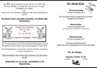 Jeder kann beim Ostereierschießen mal das Luftgewehrschießen ausprobieren. Es konnte auf Karten geschossen werden um Ostereier zu gewinnen oder auf Holzklötchen um einen Pokal zu gewinnen.