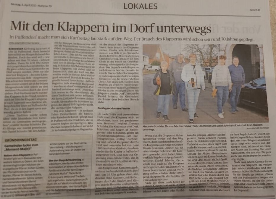 KLAPPERN zu Ostern ist auch in Puffendorf eine Jahrzente lange Tradition.